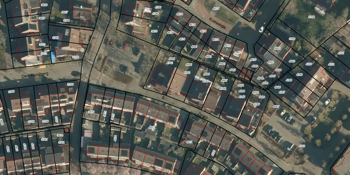 Het perceel waarop Dries 3 staat heeft een oppervlakte van 266 m². Dit is een middelgroot perceel. De perceeloppervlakte wordt geregistreerd door het Kadaster. Gedetailleerde informatie over de maten van dit perceel kunt u vinden in het rapport Kadastrale kaart met maatvoering van Dries 3.