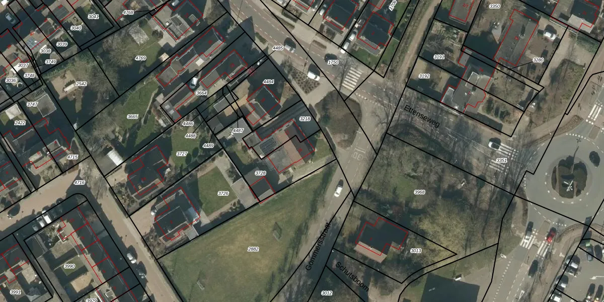 Het perceel waarop Ettenseweg 15 staat heeft een oppervlakte van 495 m². Dit is een groot perceel. De perceeloppervlakte wordt geregistreerd door het Kadaster. Gedetailleerde informatie over de maten van dit perceel kunt u vinden in het rapport Kadastrale kaart met maatvoering van Ettenseweg 15.