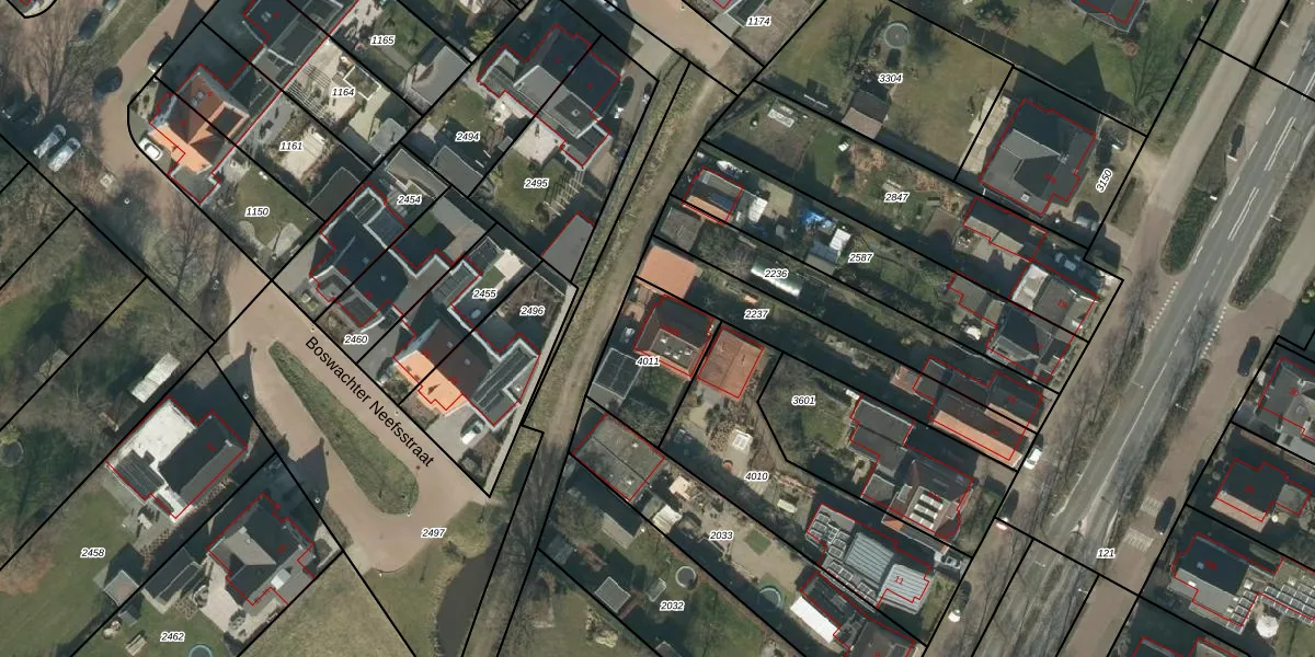Gebruik de zoekbalk of klik op een perceel voor informatie over de adressen binnen dit perceel.