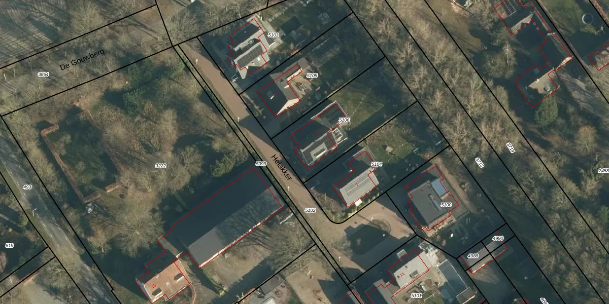 Heiakker 5 is gelegen op kadastraal perceel RBG01B5106. Deze kadastrale aanduiding is uniek en wordt gebruikt door het Kadaster om eigendomsrechten en andere zakelijke rechten vast te leggen. Het perceel maakt onderdeel uit van de kadastrale gemeente Rijsbergen.