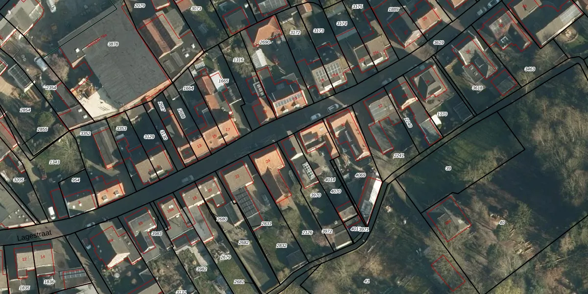 Lagestraat 26 is gelegen op kadastraal perceel RBG01H3970. Deze kadastrale aanduiding is uniek en wordt gebruikt door het Kadaster om eigendomsrechten en andere zakelijke rechten vast te leggen. Het perceel maakt onderdeel uit van de kadastrale gemeente Rijsbergen.