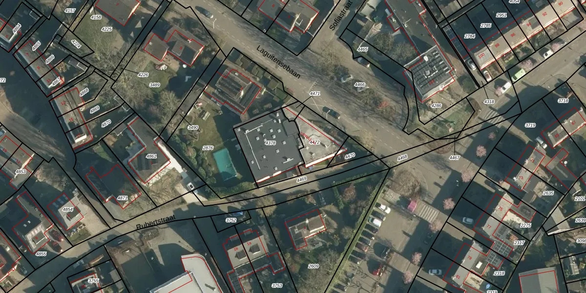 Laguitensebaan 1-PRA1 is gelegen op kadastraal perceel RBG01B4378. Deze kadastrale aanduiding is uniek en wordt gebruikt door het Kadaster om eigendomsrechten en andere zakelijke rechten vast te leggen. Het perceel maakt onderdeel uit van de kadastrale gemeente Rijsbergen.