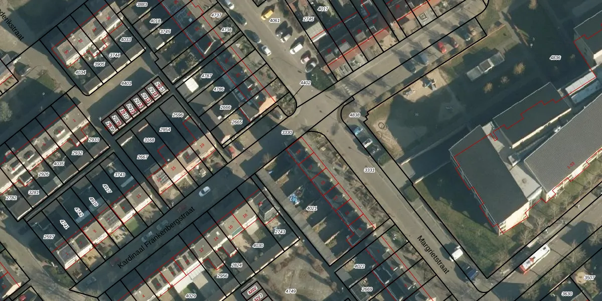 Margrietstraat 19 is gelegen op kadastraal perceel RBG01B4021. Deze kadastrale aanduiding is uniek en wordt gebruikt door het Kadaster om eigendomsrechten en andere zakelijke rechten vast te leggen. Het perceel maakt onderdeel uit van de kadastrale gemeente Rijsbergen.