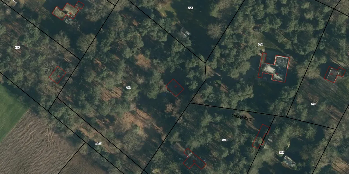 Het perceel waarop Oekelsbos 21 staat heeft een oppervlakte van 4570 m². Dit is een zeer groot perceel. De perceeloppervlakte wordt geregistreerd door het Kadaster. Gedetailleerde informatie over de maten van dit perceel kunt u vinden in het rapport Kadastrale kaart met maatvoering van Oekelsbos 21.