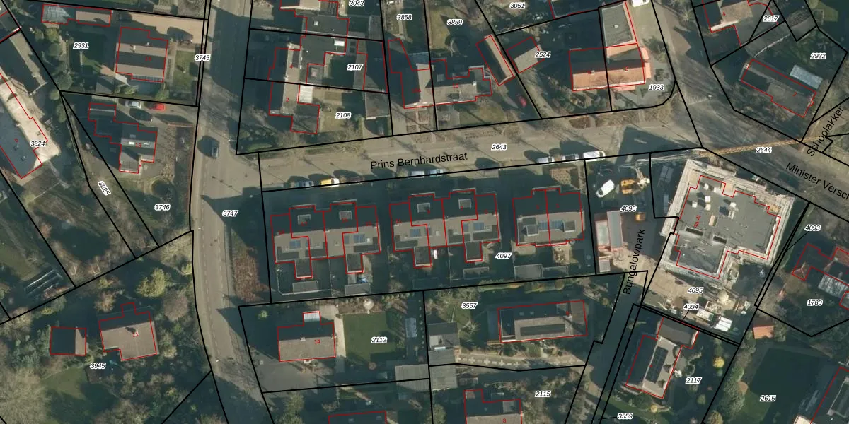 Het perceel waarop Prins Bernhardstraat 9 staat heeft een oppervlakte van 2036 m². Dit is een zeer groot perceel. De perceeloppervlakte wordt geregistreerd door het Kadaster. Gedetailleerde informatie over de maten van dit perceel kunt u vinden in het rapport Kadastrale kaart met maatvoering van Prins Bernhardstraat 9.