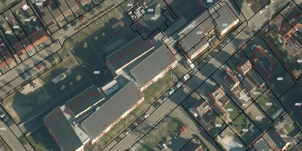 Het adres ligt op het perceel RBG01-B-4836, dat zich in de kadastrale gemeente Rijsbergen bevindt. Het perceel is met 7795 m² relatief groot. Het gemiddelde ligt in de kadastrale gemeente Rijsbergen op 6064,76 m². De grootste perceeloppervlakte in de kadastrale gemeente is 28,8 ha. De kleinste oppervlakte bedraagt 0 m². Er zijn 63 adressen aanwezig op het perceel. In de Basisregistratie Kadaster (BRK) werden de grenzen van het perceel geregistreerd op 11-06-2012.