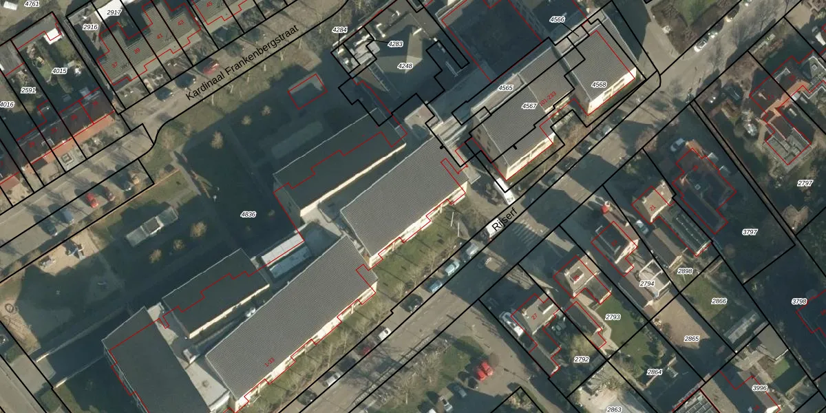 Het adres ligt op het perceel RBG01-B-4836, dat zich in de kadastrale gemeente Rijsbergen bevindt. Het perceel is met 7795 m² relatief groot. Het gemiddelde ligt in de kadastrale gemeente Rijsbergen op 6064,76 m². De grootste perceeloppervlakte in de kadastrale gemeente is 28,8 ha. De kleinste oppervlakte bedraagt 0 m². Er zijn 63 adressen aanwezig op het perceel. De huidige grenzen van het perceel zijn digitaal in de Basisregistratie Kadaster (BRK) geregistreerd op 11-06-2012.