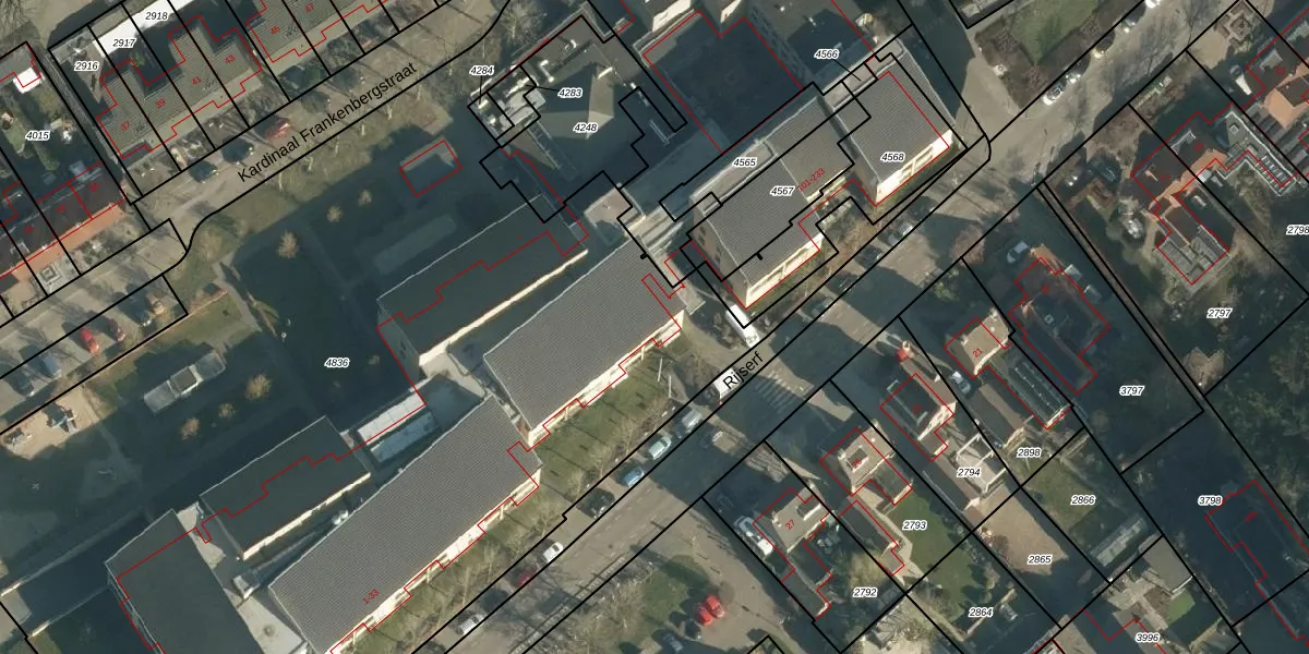 Het adres ligt op het perceel RBG01-B-4836, dat zich in de kadastrale gemeente Rijsbergen bevindt. Het perceel is met 7795 m² relatief groot. Het gemiddelde ligt in de kadastrale gemeente Rijsbergen op 6064,76 m². De grootste perceeloppervlakte in de kadastrale gemeente is 28,8 ha. De kleinste oppervlakte bedraagt 0 m². Op het perceel zijn 63 adressen aanwezig. De huidige grenzen van het perceel zijn digitaal in de Basisregistratie Kadaster (BRK) geregistreerd op 11-06-2012.