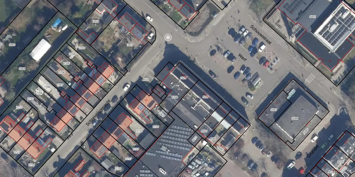 Het perceel waarop Werf 19-A staat heeft een oppervlakte van 371 m². Dit is een groot perceel. De perceeloppervlakte wordt geregistreerd door het Kadaster. Gedetailleerde informatie over de maten van dit perceel kunt u vinden in het rapport Kadastrale kaart met maatvoering van Werf 19-A.