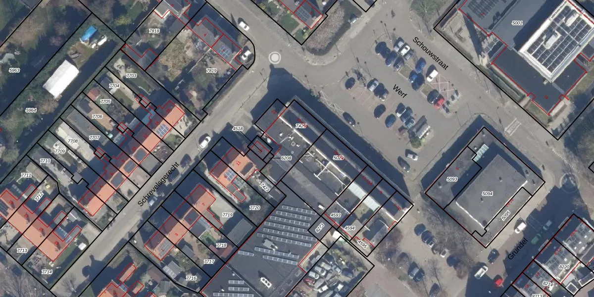 Het perceel waarop Werf 19 staat heeft een oppervlakte van 371 m². Dit is een groot perceel. De perceeloppervlakte wordt geregistreerd door het Kadaster. Gedetailleerde informatie over de maten van dit perceel kunt u vinden in het rapport Kadastrale kaart met maatvoering van Werf 19.