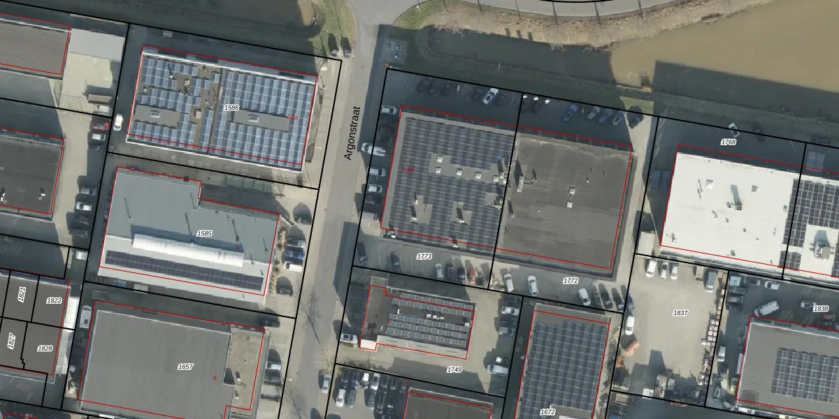 Het perceel waarop Argonstraat 1-E staat heeft een oppervlakte van 1570 m². Dit is een zeer groot perceel. De perceeloppervlakte wordt geregistreerd door het Kadaster. Gedetailleerde informatie over de maten van dit perceel kunt u vinden in het rapport Kadastrale kaart met maatvoering van Argonstraat 1-E.