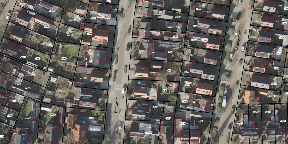 Gebruik de zoekbalk of klik op een perceel voor informatie over de adressen binnen dit perceel.