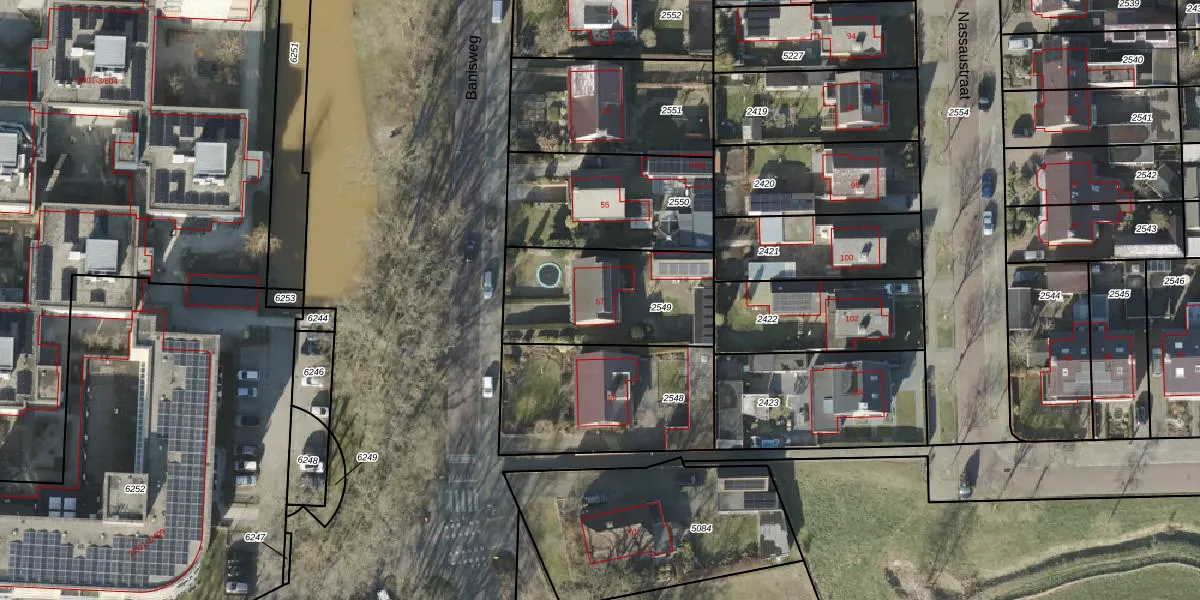 Banisweg 57 is gelegen op kadastraal perceel RSN01H2549. Deze kadastrale aanduiding is uniek en wordt gebruikt door het Kadaster om eigendomsrechten en andere zakelijke rechten vast te leggen. Het perceel maakt onderdeel uit van de kadastrale gemeente Rijssen.