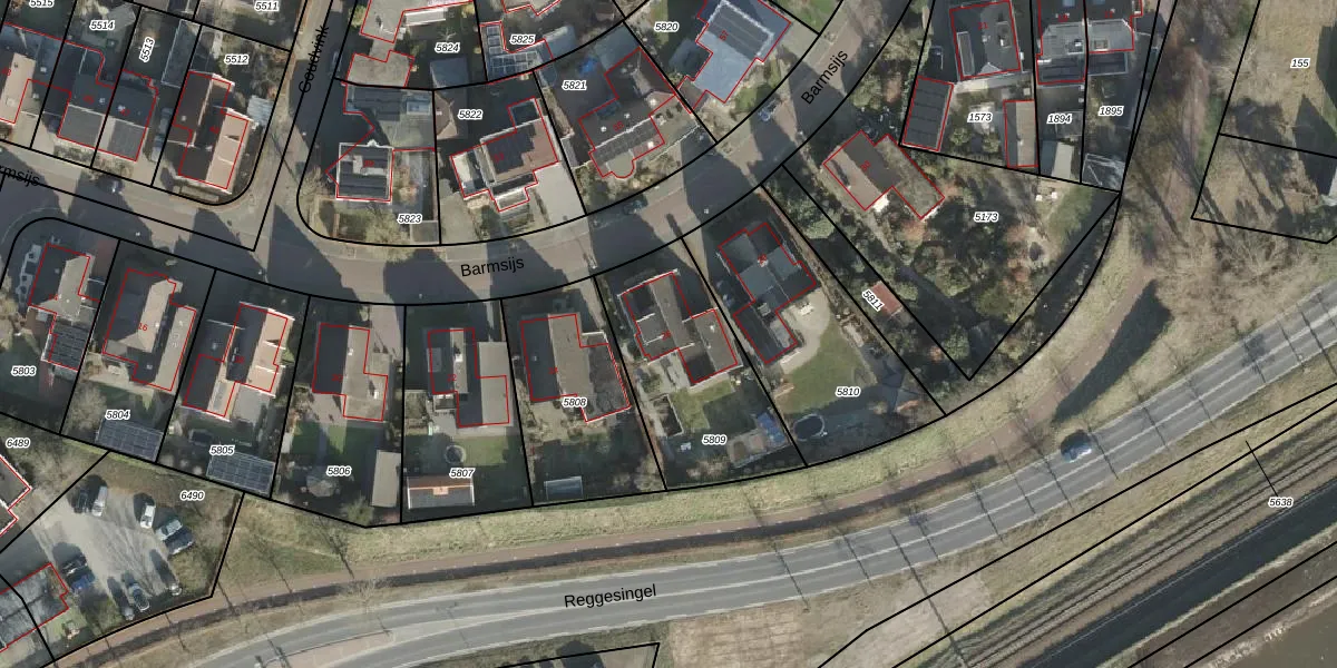 Het perceel waarop Barmsijs 26 staat heeft een oppervlakte van 639 m². Dit is een groot perceel. De perceeloppervlakte wordt geregistreerd door het Kadaster. Gedetailleerde informatie over de maten van dit perceel kunt u vinden in het rapport Kadastrale kaart met maatvoering van Barmsijs 26.