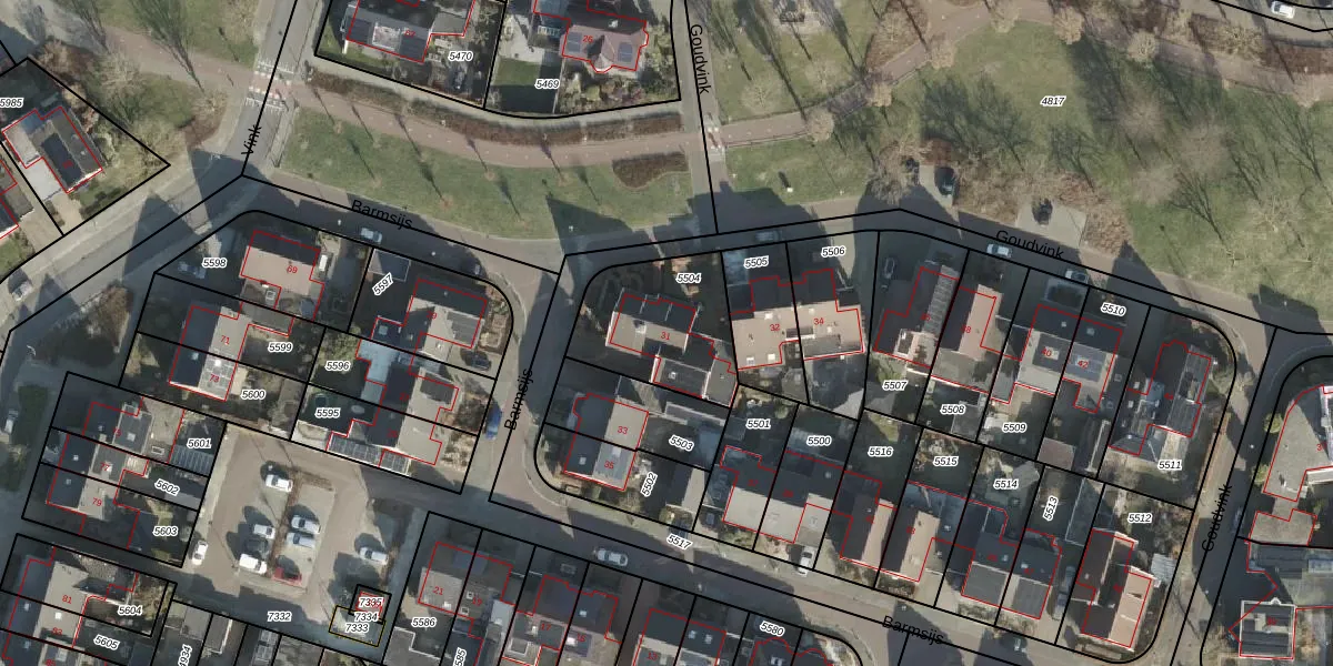 Het perceel waarop Barmsijs 31 staat heeft een oppervlakte van 425 m². Dit is een groot perceel. De perceeloppervlakte wordt geregistreerd door het Kadaster. Gedetailleerde informatie over de maten van dit perceel kunt u vinden in het rapport Kadastrale kaart met maatvoering van Barmsijs 31.