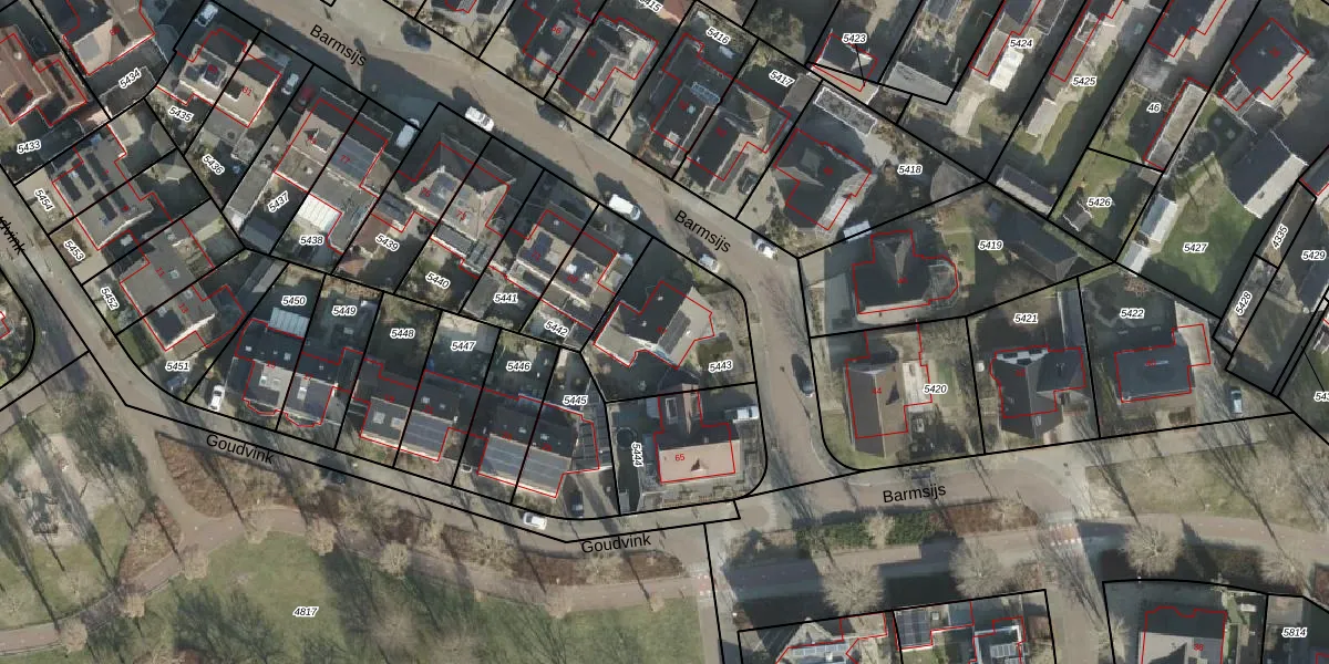 Het perceel waarop Barmsijs 67 staat heeft een oppervlakte van 431 m². Dit is een groot perceel. De perceeloppervlakte wordt geregistreerd door het Kadaster. Gedetailleerde informatie over de maten van dit perceel kunt u vinden in het rapport Kadastrale kaart met maatvoering van Barmsijs 67.