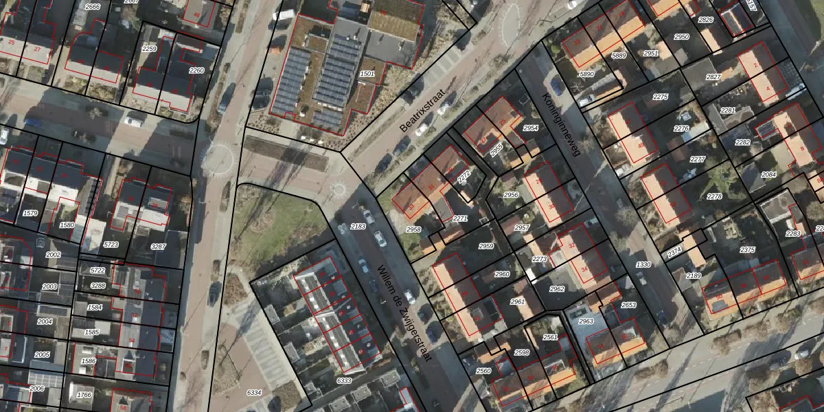 Het perceel waarop Beatrixstraat 33 staat heeft een oppervlakte van 197 m². Dit is een middelgroot perceel. De perceeloppervlakte wordt geregistreerd door het Kadaster. Gedetailleerde informatie over de maten van dit perceel kunt u vinden in het rapport Kadastrale kaart met maatvoering van Beatrixstraat 33.