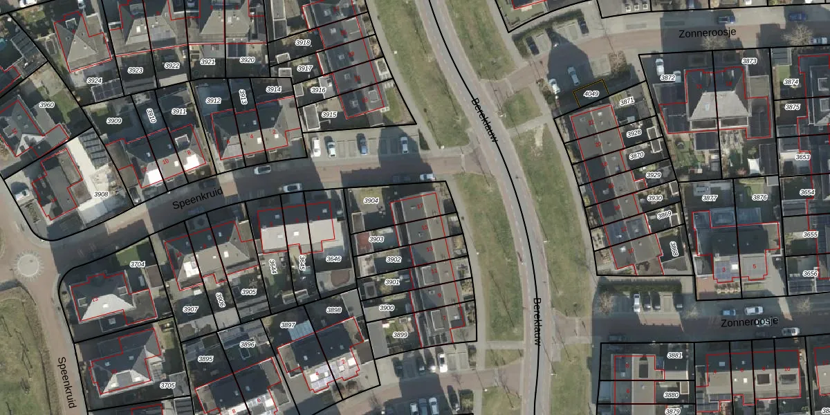Gebruik de zoekbalk of klik op een perceel voor informatie over de adressen binnen dit perceel.
