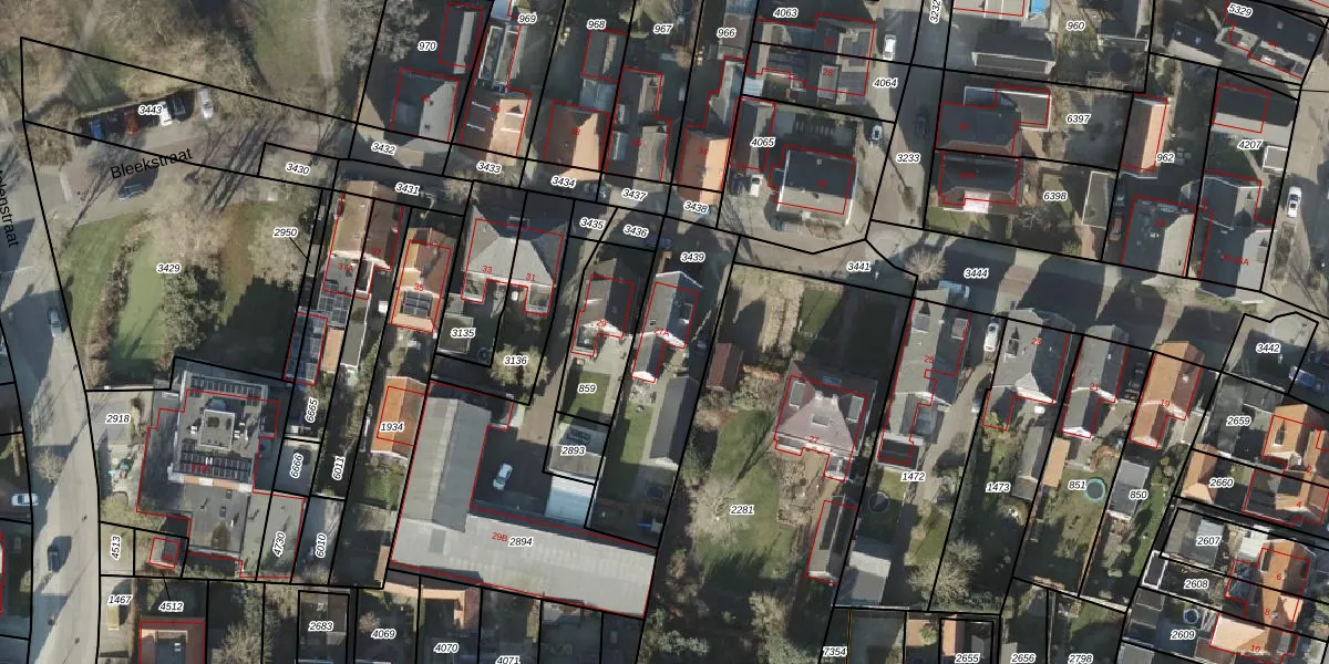 Het perceel waarop Bleekstraat 27-A staat heeft een oppervlakte van 545 m². Dit is een groot perceel. De perceeloppervlakte wordt geregistreerd door het Kadaster. Gedetailleerde informatie over de maten van dit perceel kunt u vinden in het rapport Kadastrale kaart met maatvoering van Bleekstraat 27-A.