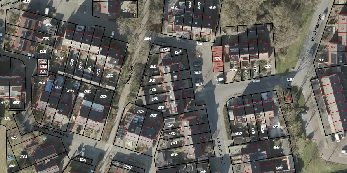 Gebruik de zoekbalk of klik op een perceel voor informatie over de adressen binnen dit perceel.