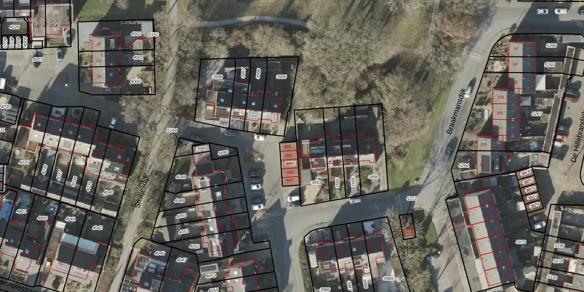 Het perceel waarop Braakmansdijk 96-E staat heeft een oppervlakte van 90 m². Dit is een klein perceel. De perceeloppervlakte wordt geregistreerd door het Kadaster. Gedetailleerde informatie over de maten van dit perceel kunt u vinden in het rapport Kadastrale kaart met maatvoering van Braakmansdijk 96-E.