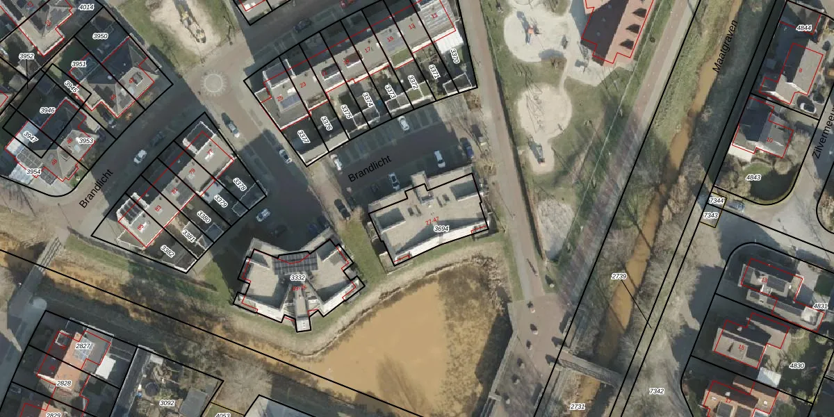 Het perceel waarop Brandlicht 33 staat heeft een oppervlakte van 355 m². Dit is een groot perceel. De perceeloppervlakte wordt geregistreerd door het Kadaster. Gedetailleerde informatie over de maten van dit perceel kunt u vinden in het rapport Kadastrale kaart met maatvoering van Brandlicht 33.