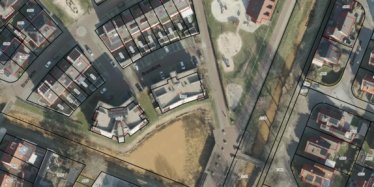 Het perceel waarop Brandlicht 41 staat heeft een oppervlakte van 355 m². Dit is een groot perceel. De perceeloppervlakte wordt geregistreerd door het Kadaster. Gedetailleerde informatie over de maten van dit perceel kunt u vinden in het rapport Kadastrale kaart met maatvoering van Brandlicht 41.