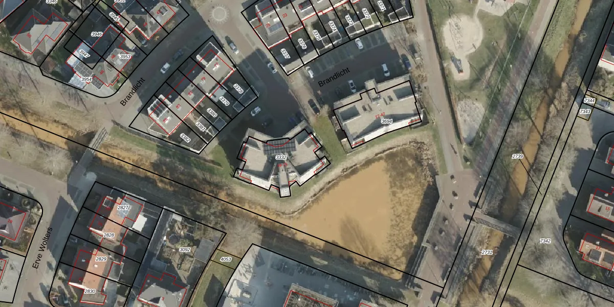 Het perceel waarop Brandlicht 57 staat heeft een oppervlakte van 406 m². Dit is een groot perceel. De perceeloppervlakte wordt geregistreerd door het Kadaster. Gedetailleerde informatie over de maten van dit perceel kunt u vinden in het rapport Kadastrale kaart met maatvoering van Brandlicht 57.