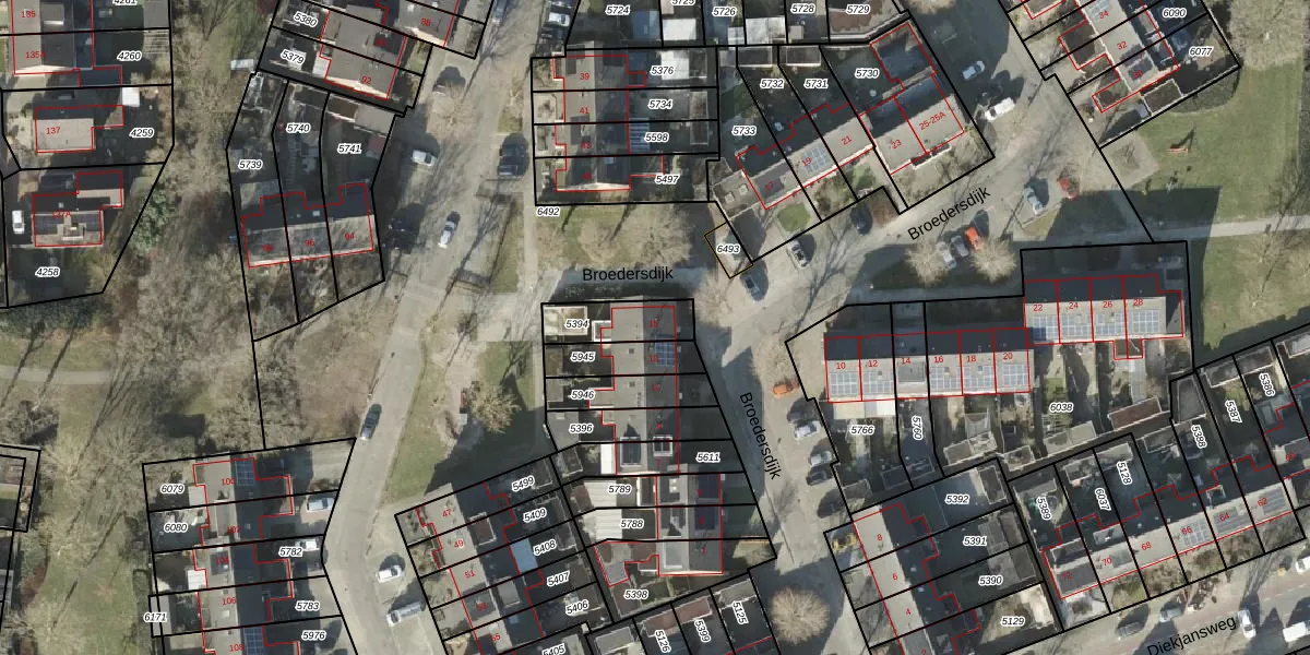 Broedersdijk 15 is gelegen op kadastraal perceel RSN01H5394. Deze kadastrale aanduiding is uniek en wordt gebruikt door het Kadaster om eigendomsrechten en andere zakelijke rechten vast te leggen. Het perceel maakt onderdeel uit van de kadastrale gemeente Rijssen.