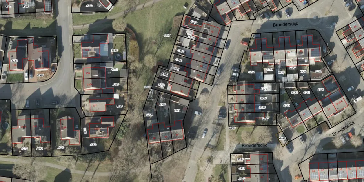Het perceel waarop Broedersdijk 92 staat heeft een oppervlakte van 160 m². Dit is een middelgroot perceel. De perceeloppervlakte wordt geregistreerd door het Kadaster. Gedetailleerde informatie over de maten van dit perceel kunt u vinden in het rapport Kadastrale kaart met maatvoering van Broedersdijk 92.