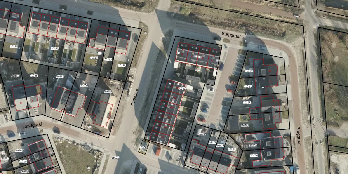 Het perceel waarop Cattelaar 104 staat heeft een oppervlakte van 1619 m². Dit is een zeer groot perceel. De perceeloppervlakte wordt geregistreerd door het Kadaster. Gedetailleerde informatie over de maten van dit perceel kunt u vinden in het rapport Kadastrale kaart met maatvoering van Cattelaar 104.