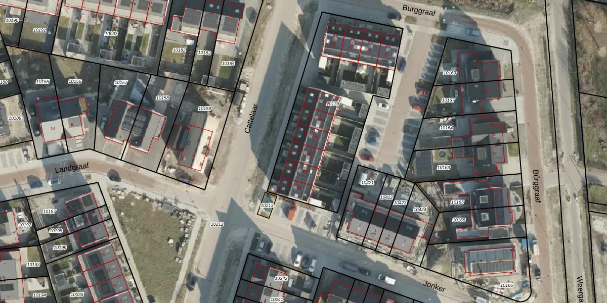 Het perceel waarop Cattelaar 98 staat heeft een oppervlakte van 1619 m². Dit is een zeer groot perceel. De perceeloppervlakte wordt geregistreerd door het Kadaster. Gedetailleerde informatie over de maten van dit perceel kunt u vinden in het rapport Kadastrale kaart met maatvoering van Cattelaar 98.
