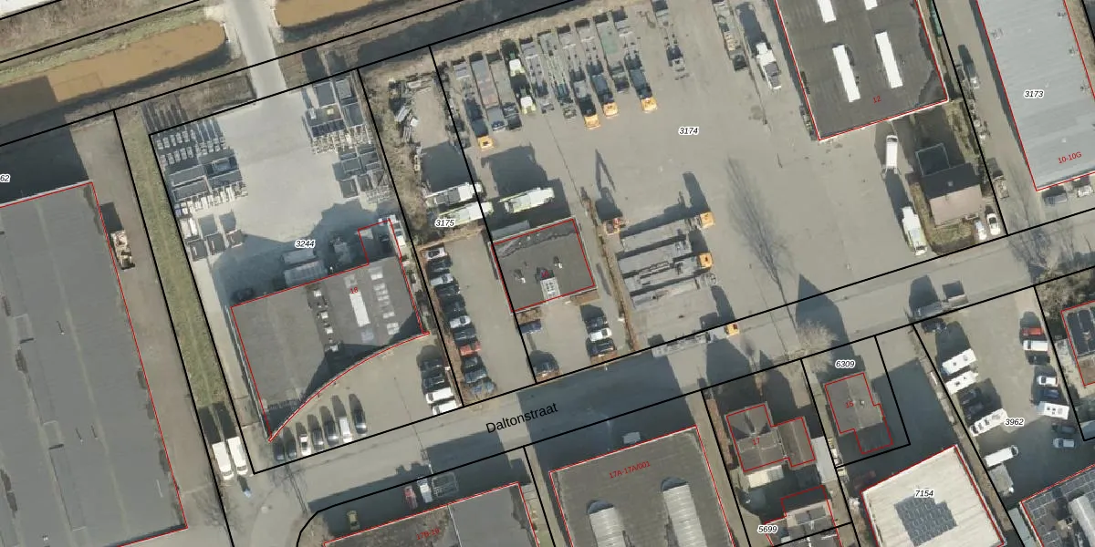 Het perceel waarop Daltonstraat 16 staat heeft een oppervlakte van 5849 m². Dit is een zeer groot perceel. De perceeloppervlakte wordt geregistreerd door het Kadaster. Gedetailleerde informatie over de maten van dit perceel kunt u vinden in het rapport Kadastrale kaart met maatvoering van Daltonstraat 16.