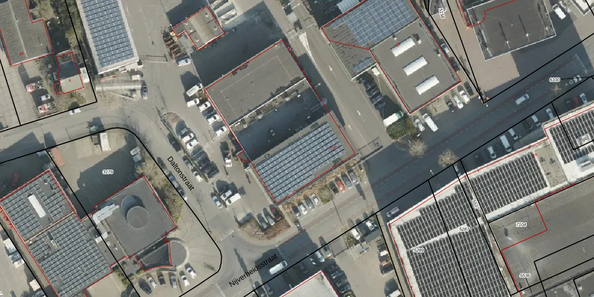 Het perceel waarop Daltonstraat 2 staat heeft een oppervlakte van 15,9 ha. Dit is een zeer groot perceel. De perceeloppervlakte wordt geregistreerd door het Kadaster. Gedetailleerde informatie over de maten van dit perceel kunt u vinden in het rapport Kadastrale kaart met maatvoering van Daltonstraat 2.