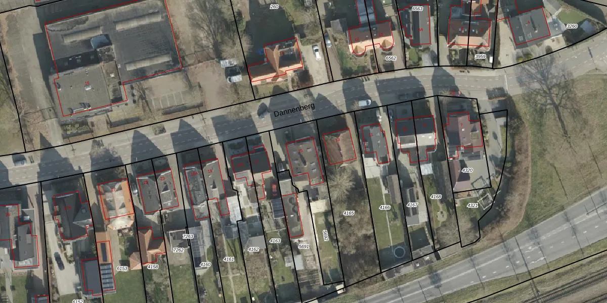 Het perceel waarop Dannenberg 15 staat heeft een oppervlakte van 547 m². Dit is een groot perceel. De perceeloppervlakte wordt geregistreerd door het Kadaster. Gedetailleerde informatie over de maten van dit perceel kunt u vinden in het rapport Kadastrale kaart met maatvoering van Dannenberg 15.