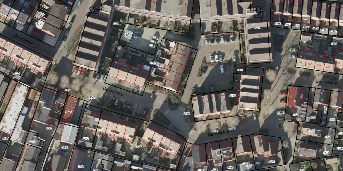 De Hofstee 77 is gelegen op kadastraal perceel RSN01H4192. Deze kadastrale aanduiding is uniek en wordt gebruikt door het Kadaster om eigendomsrechten en andere zakelijke rechten vast te leggen. Het perceel maakt onderdeel uit van de kadastrale gemeente Rijssen.