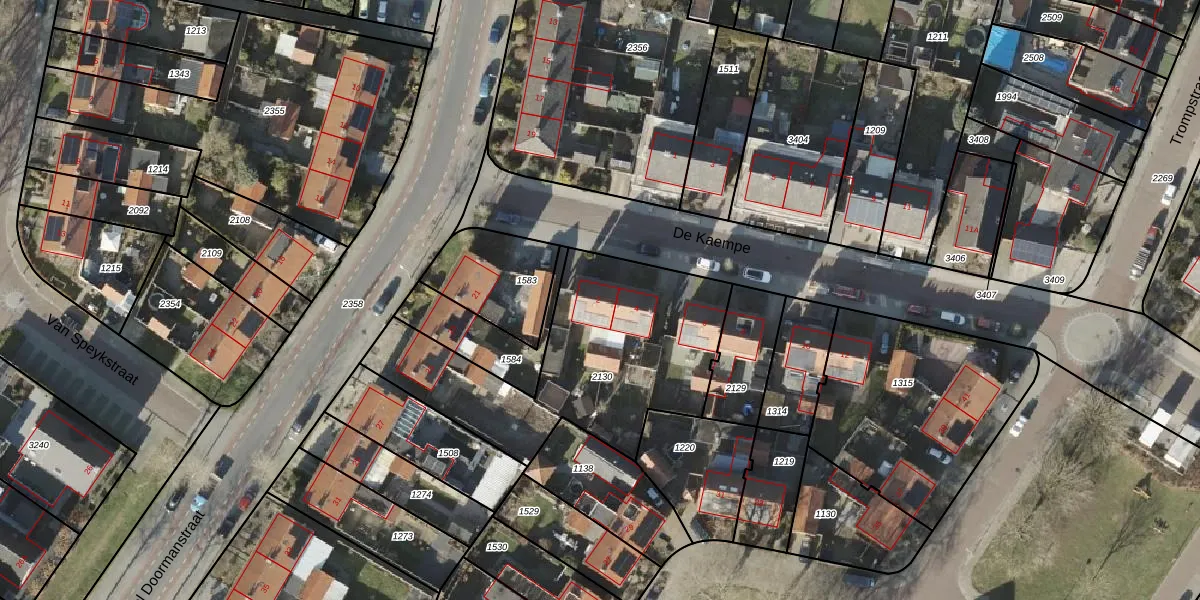 Het perceel waarop De Kaempe 2 staat heeft een oppervlakte van 1104 m². Dit is een zeer groot perceel. De perceeloppervlakte wordt geregistreerd door het Kadaster. Gedetailleerde informatie over de maten van dit perceel kunt u vinden in het rapport Kadastrale kaart met maatvoering van De Kaempe 2.