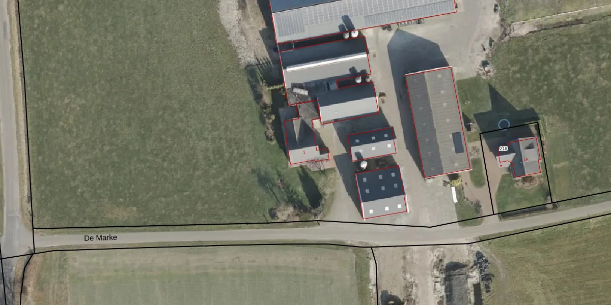 Het perceel waarop De Marke 1 staat heeft een oppervlakte van 3,9 ha. Dit is een zeer groot perceel. De perceeloppervlakte wordt geregistreerd door het Kadaster. Gedetailleerde informatie over de maten van dit perceel kunt u vinden in het rapport Kadastrale kaart met maatvoering van De Marke 1.