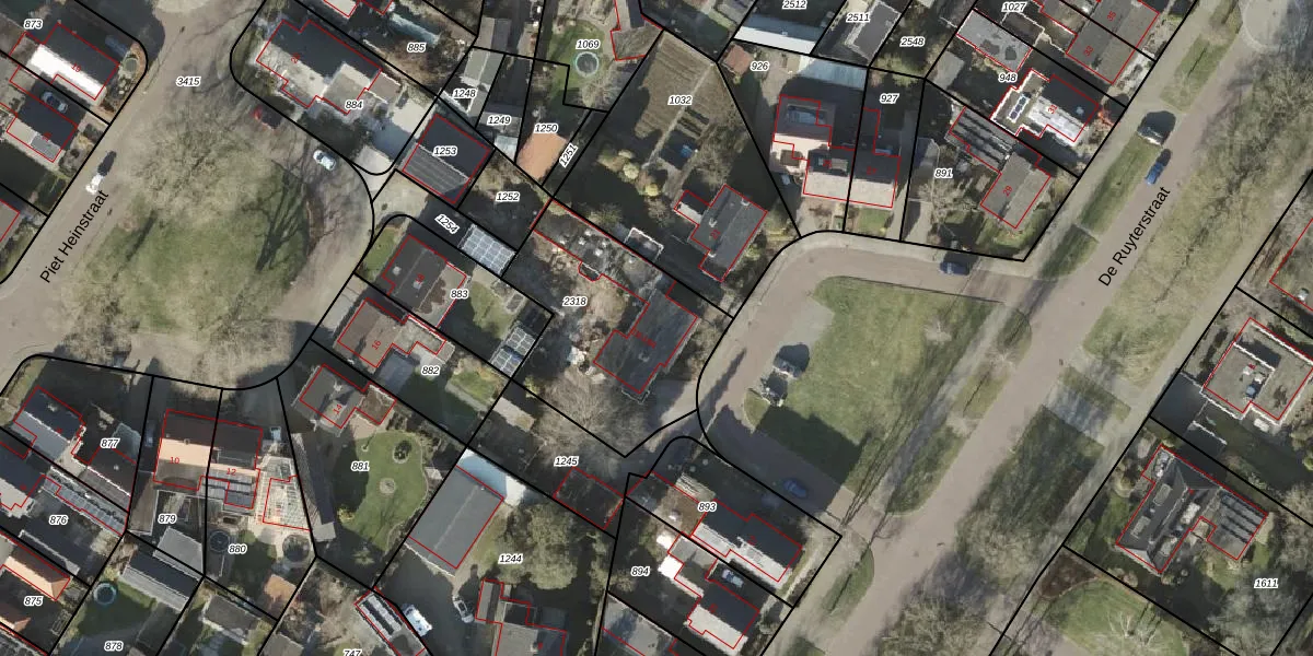 Het perceel waarop De Ruyterstraat 19 staat heeft een oppervlakte van 775 m². Dit is een groot perceel. De perceeloppervlakte wordt geregistreerd door het Kadaster. Gedetailleerde informatie over de maten van dit perceel kunt u vinden in het rapport Kadastrale kaart met maatvoering van De Ruyterstraat 19.