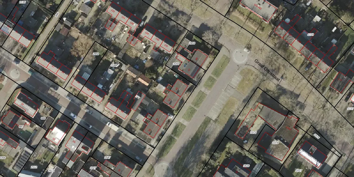 Het perceel waarop De Ruyterstraat 45 staat heeft een oppervlakte van 4820 m². Dit is een zeer groot perceel. De perceeloppervlakte wordt geregistreerd door het Kadaster. Gedetailleerde informatie over de maten van dit perceel kunt u vinden in het rapport Kadastrale kaart met maatvoering van De Ruyterstraat 45.