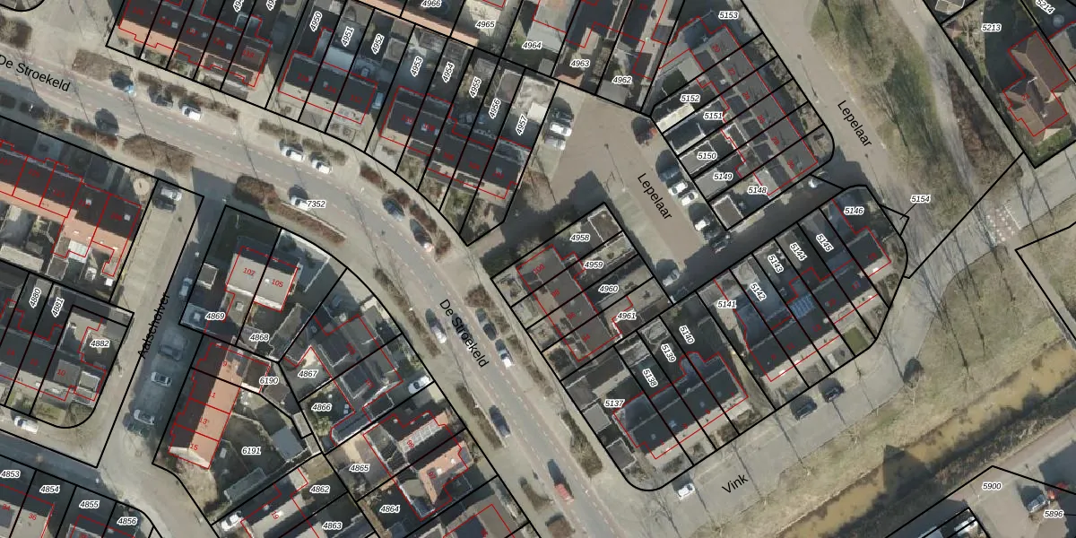 Gebruik de zoekbalk of klik op een perceel voor informatie over de adressen binnen dit perceel.