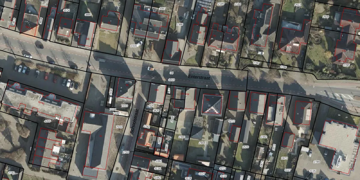 Het perceel waarop Enterstraat 102 staat heeft een oppervlakte van 113 m². Dit is een middelgroot perceel. De perceeloppervlakte wordt geregistreerd door het Kadaster. Gedetailleerde informatie over de maten van dit perceel kunt u vinden in het rapport Kadastrale kaart met maatvoering van Enterstraat 102.
