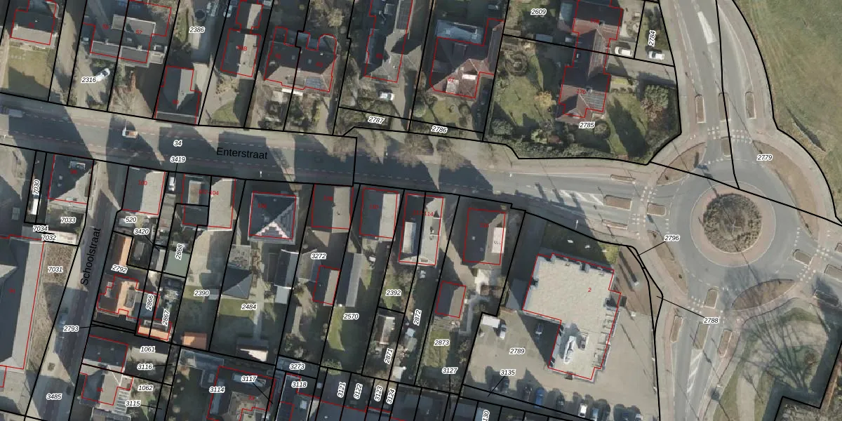 Het perceel waarop Enterstraat 112 staat heeft een oppervlakte van 187 m². Dit is een middelgroot perceel. De perceeloppervlakte wordt geregistreerd door het Kadaster. Gedetailleerde informatie over de maten van dit perceel kunt u vinden in het rapport Kadastrale kaart met maatvoering van Enterstraat 112.