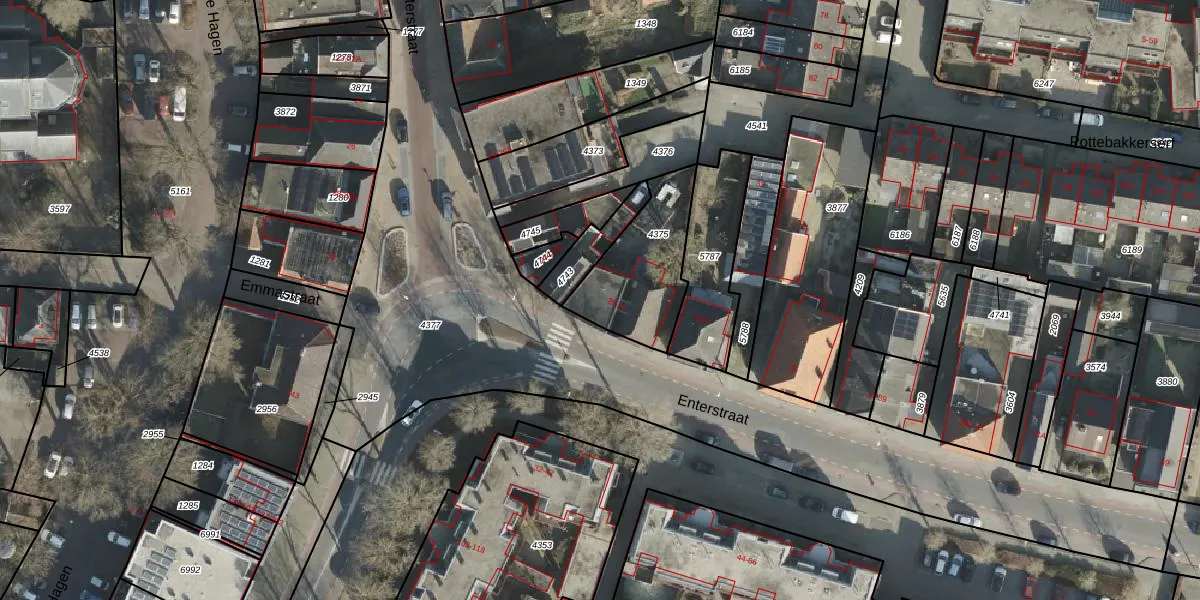 Het perceel waarop Enterstraat 29 staat heeft een oppervlakte van 359 m². Dit is een groot perceel. De perceeloppervlakte wordt geregistreerd door het Kadaster. Gedetailleerde informatie over de maten van dit perceel kunt u vinden in het rapport Kadastrale kaart met maatvoering van Enterstraat 29.