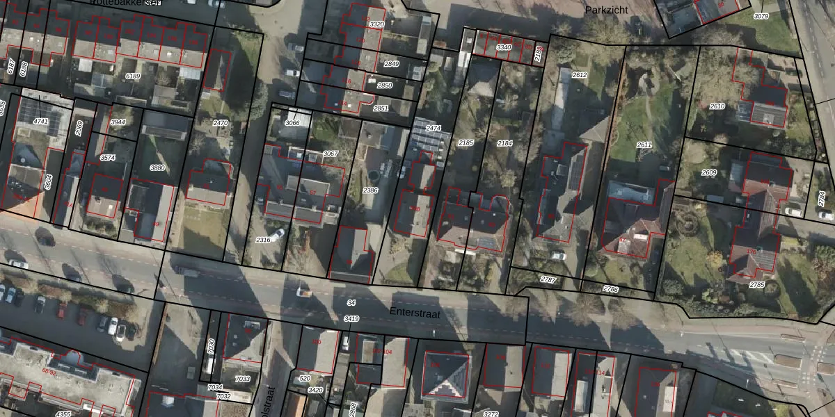 Het perceel waarop Enterstraat 59-B staat heeft een oppervlakte van 606 m². Dit is een groot perceel. De perceeloppervlakte wordt geregistreerd door het Kadaster. Gedetailleerde informatie over de maten van dit perceel kunt u vinden in het rapport Kadastrale kaart met maatvoering van Enterstraat 59-B.
