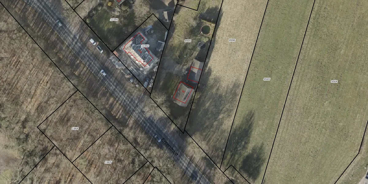 Het perceel waarop Enterstraat 99 staat heeft een oppervlakte van 1705 m². Dit is een zeer groot perceel. De perceeloppervlakte wordt geregistreerd door het Kadaster. Gedetailleerde informatie over de maten van dit perceel kunt u vinden in het rapport Kadastrale kaart met maatvoering van Enterstraat 99.