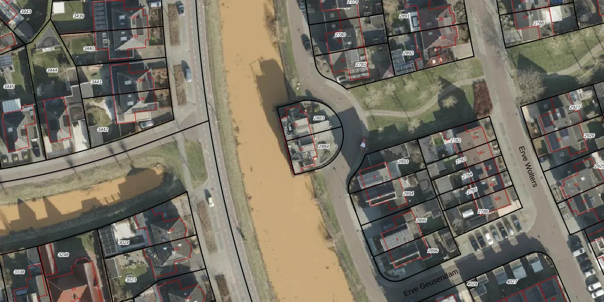 Erve Geusendam 21 is gelegen op kadastraal perceel RSN01E2884. Deze kadastrale aanduiding is uniek en wordt gebruikt door het Kadaster om eigendomsrechten en andere zakelijke rechten vast te leggen. Het perceel maakt onderdeel uit van de kadastrale gemeente Rijssen.