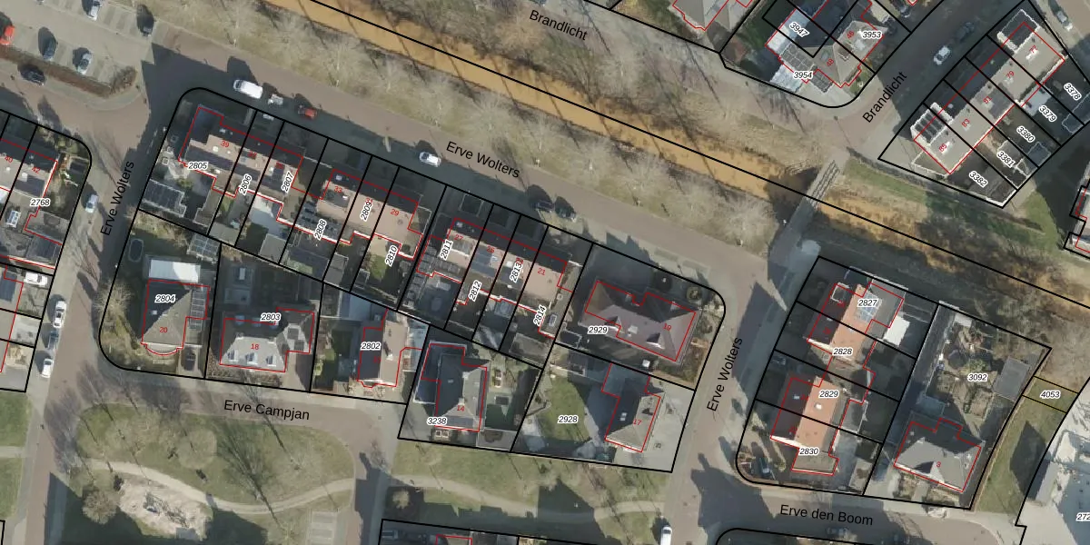 Gebruik de zoekbalk of klik op een perceel voor informatie over de adressen binnen dit perceel.
