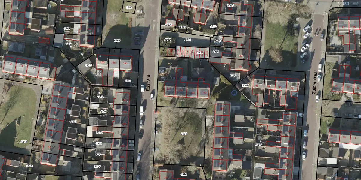 Het perceel waarop Esstraat 129 staat heeft een oppervlakte van 6036 m². Dit is een zeer groot perceel. De perceeloppervlakte wordt geregistreerd door het Kadaster. Gedetailleerde informatie over de maten van dit perceel kunt u vinden in het rapport Kadastrale kaart met maatvoering van Esstraat 129.