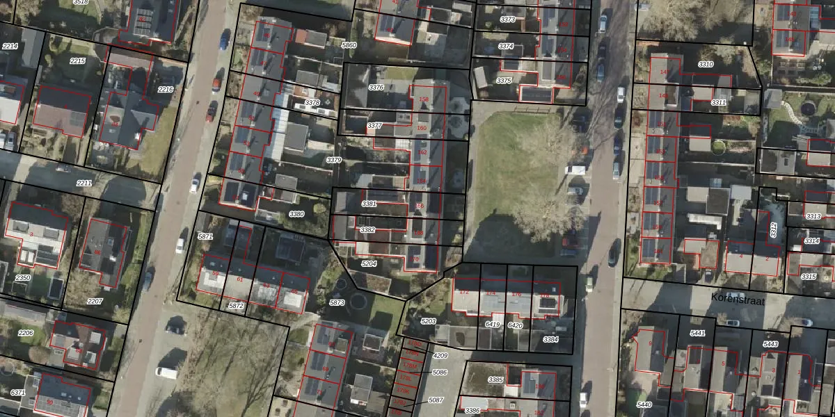 Gebruik de zoekbalk of klik op een perceel voor informatie over de adressen binnen dit perceel.